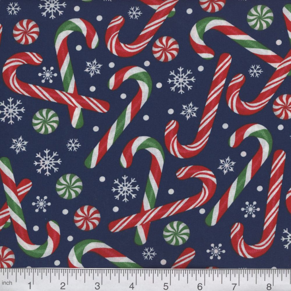Home > Fabric Collections > 45″ Christmas Candy Canes Navy