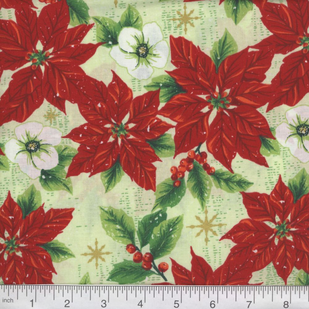 Home > Fabric Collections > 45″ Christmas Poinsettia Gold Metallic
