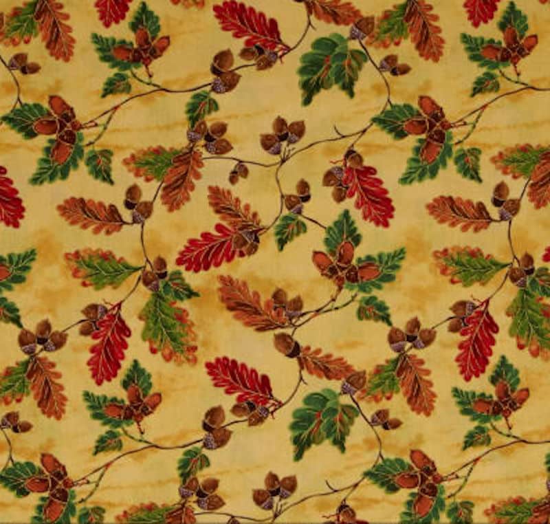 Home > Fabric Collections > 45″ FABRI QUILT GOLDEN HARVEST OPEN LEAVES METALLIC