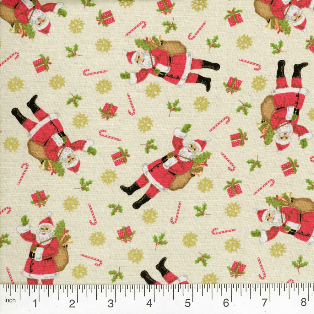 Home > Fabric Collections > 45″ Holly Jolly Christmas Santa – Cream Metallic
