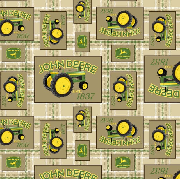 Home > Fabric Collections > 45″ John Deere Tractor Plaid Tan