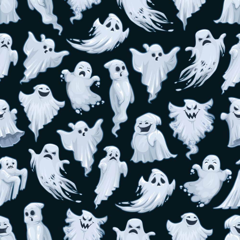 Home > Fabric Collections > Bolt 45″ Eerie Ghosts Allover – Black $2.85 YD 15 Yards